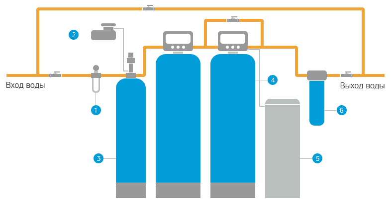 Умягчение воды. Питьевое водоснабжение предполагает получение воды, избавленной от находящихся в ней солей тяжелых металлов, для чего используют систему умягчения воды. Длительное использование слишком жесткой воды может преждевременно вывести из строя различные бытовые приборы – стиральные, посудомоечные машины, системы отопления.