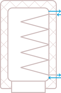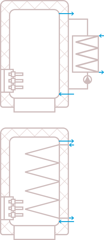 Применение выносного теплообменника и насосной схемы циркуляции воды позволяет значительно ускорить процесс нагрева воды в водонагревателе, делает всю систему более ремонтопригодной, по сравнению со встроенным теплообменником.