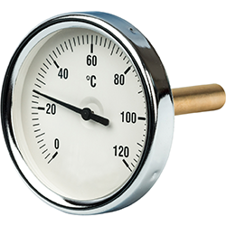 Принцип работы этого вида термометров основан на различном коэффициенте температурного расширения металлов. В его конструкции есть биметаллическая пластина, состоящая из двух различных металлов. При нагреве один из них начинает деформироваться, тем самым изменяя показания на индикаторе. Это довольно надежные устройства, которые отличаются высокой точностью показаний. Но у них есть один недостаток – большая инертность. При резком изменении температуры среды показания отобразятся не сразу, а только через некоторое время.