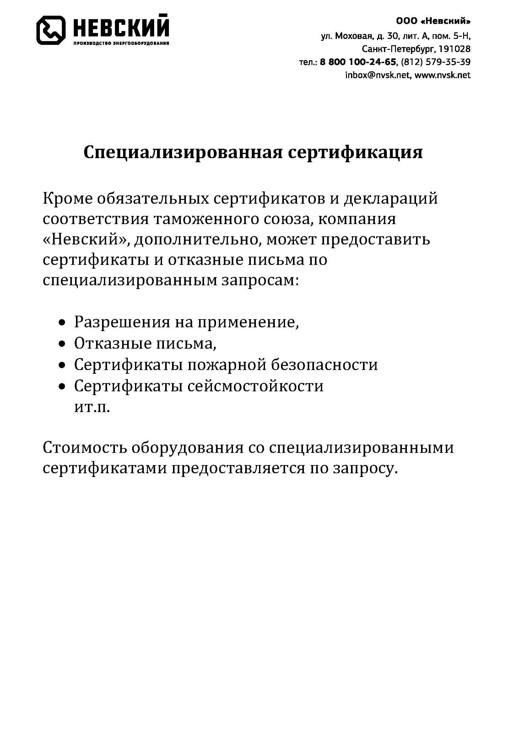 Больше информации о технических возможностях и вариантах исполнения оборудования «Невский» можно получить в нашем