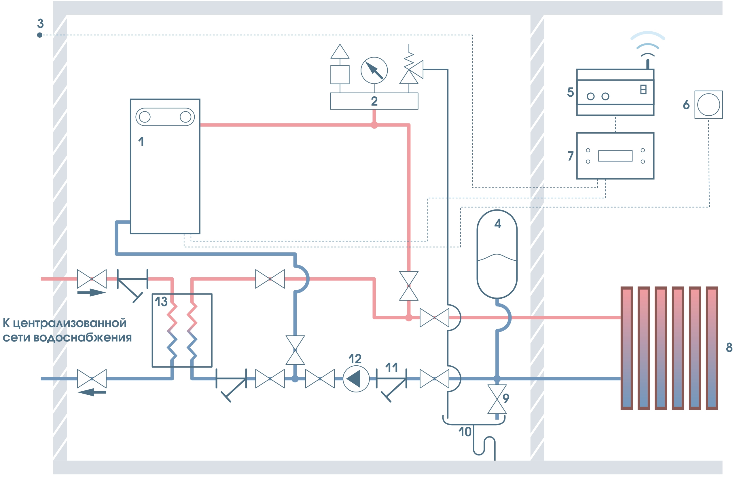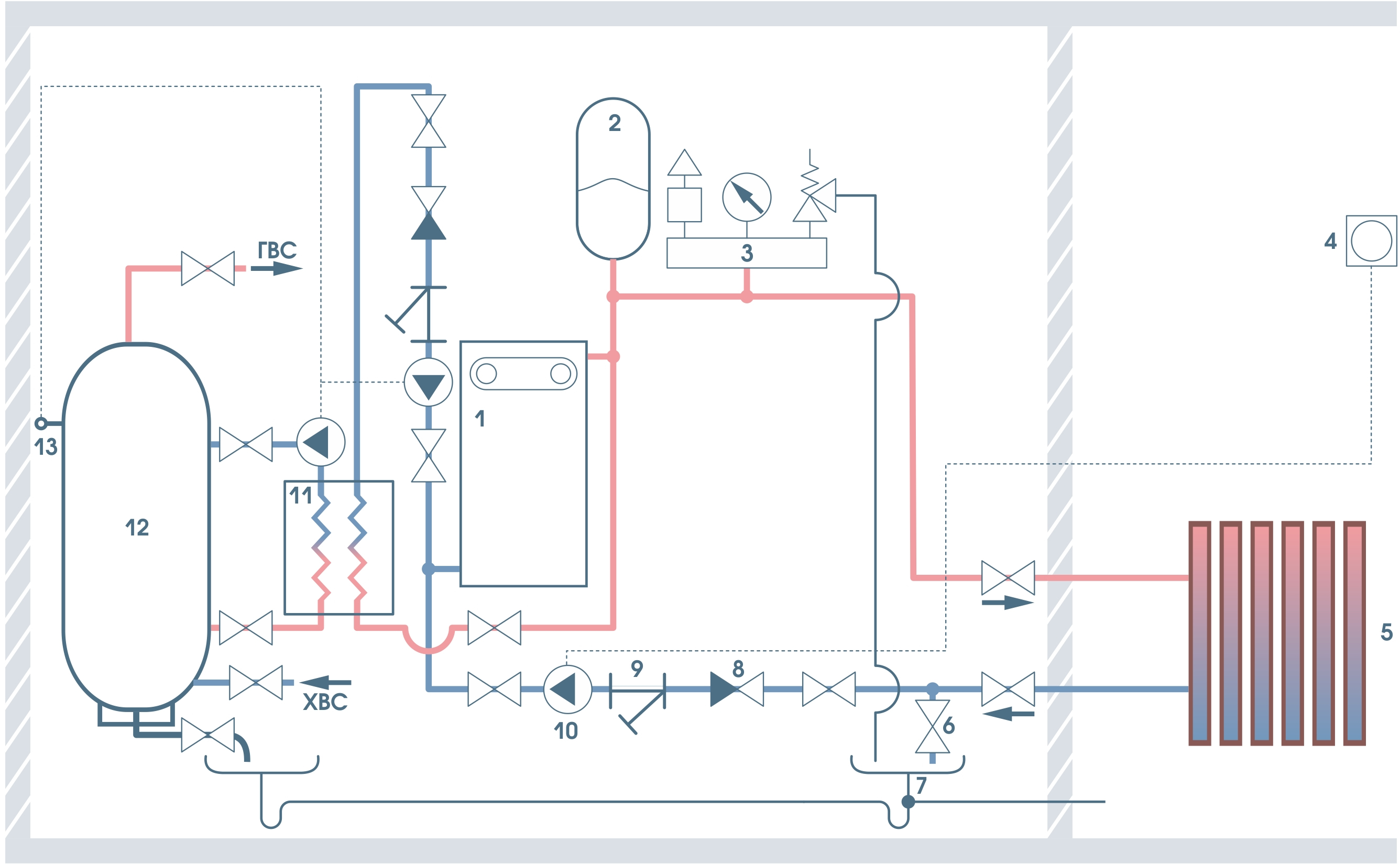 | Диапазон регулирования температуры теплоносителя | 5 - 90 | ºC |